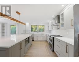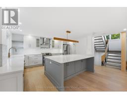 Backed by a private ravine lot and framed by a dual-level walkout terrace, 33 Commanche Drive offers the rare feeling of retreat within the city. Beautifully redesigned from 2021-2025 with care, craftsmanship, and modern comfort. The open-concept main floor was rebuilt for effortless living, featuring engineered hardwood, a new front door with glass-partition entry, pot lights, and a stunning 2024 kitchen with quartz counters, a large island, GE Cafe appliances (with fridge hot-water dispenser and Keurig system), and designer finishes. A permitted structural beam creates the bright, flowing layout, while the gas fireplace anchors the living area with warmth and calm. Main-floor laundry and a renovated powder room add convenience. Upstairs, whitewashed and resurfaced hardwood leads to four bedrooms, including a serene primary suite with custom walk-in closet and a spa-like ensuite featuring Statuario porcelain tile, Carrara-porcelain shower floor and threshold, and heated flooring. A fully updated secondary bathroom completes the level. The walkout lower level includes a wellness shower and sauna, full bathroom, wet bar, updated lighting, and a bright entertainment area opening to the private yard. Every major element has been upgraded, including a 200-amp electrical panel, plumbing, designer hardware, air-source heat pump (2023), hot water tank (2025), and updated lighting throughout. Exterior upgrades include Hardie board, Roof with fascia and soffit (2023), new window glass (2021), glass railings, landscaping, irrigation system, landscape lighting, exterior fixtures, and front and garage doors. (id:61594)
