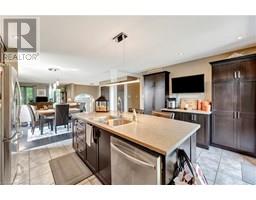 Very well maintained 5 bedroom raised bungalow. Open concept, kitchen island, gorgeous hardwood floors, stone fireplace in the main floor family room. 3 bedrooms on main level plus 2 bedrooms in basement. Huge rec room with fireplace; in law potential with walkout to side yard from the basement. Fully fenced yard with gas firepit and a gas bbq on the deck, 2 car attached garage with walk up loft for additional storage space, and a concrete driveway. Leaf filter system installed in 2023, new roof 2022. Meticulously maintained with nothing left to do. (id:61594)