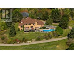 Perched high on a hill in one of Palgrave's most sought-after estate communities, this over 4000 sq ft home sits on nearly 3.5 private acres surrounded by mature trees and breathtaking panoramic views of Caledon. Featuring 5 bedrooms and 4 bathrooms, this elegant home is filled with natural light from expansive windows that frame stunning vistas in every direction. Designed for both comfort and entertaining, the property boasts three brick fireplaces, a finished walkout basement, and a custom wine cellar. The heart of the home includes a bright kitchen with a built-in gas cooktop and spacious principal rooms, while outdoors you'll enjoy sun all day by the inground pool, plus a cedar lined sauna for year-round relaxation.With its seamless blend of space, privacy, and luxury features, plus newer roof, furnace, and windows already in place, this estate is an exceptional opportunity to create your dream retreat in one of Caledon's most prestigious enclaves. (id:61594)