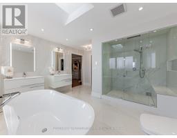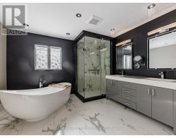 Welcome to a truly exceptional residence-an architectural masterpiece that defines luxury living. Situated on a prominent professionally landscaped corner lot in the most prestigious pocket of the GTA, this immaculate home commands attention from the moment you arrive. A grand arched 8-foot-wide, 2-inch-thick solid oak double-door entrance opens to a Grandioso foyer with soaring 18-foot ceilings, lots of windows, a stunning chandelier. A dramatic winding open oak staircase leads gracefully to both the upper and lower levels, setting the tone for the impressive layout throughout. The main floor offers an ideal blend of elegance and functionality. On one side, the formal living and dining rooms are finished with exquisite style perfect for entertaining. To the other side, a private office/library which provides a comfortable workspace for today's top professionals working from home. The expansive, open-concept massive kitchen is a chef's dream, featuring a 2nd dining area, a study nook, lots of windows for natural sunlight, brand-new stainless-steel appliances, and an island/bar for a nice hang out spot. The large family room features its own fireplace and a quiet and inviting sitting area enhanced by skylights-a sunroom overlooking your gorgeous professionally landscaped backyard. Your backyard oasis consists of full privacy for your high-end functions, built-in custom brick BBQ, paved flagstone and plenty of space for large gatherings. Upstairs, you'll find your generously sized bedrooms. The luxurious primary retreat boasts a walk-in closet and a spa-like 5-piece ensuite with heated floors, a soaker tub, and a separate shower. An additional bedroom includes its own three-piece ensuite, offering comfort and privacy for family or guests. The lower level is equally impressive, featuring a full second kitchen w/new appliances, a full bathroom, high ceilings, windows, walkout, perfect for a state of the art entertainment centre, Nanny's quarters or large in-law suite (id:61594)