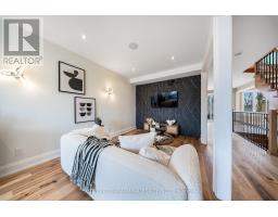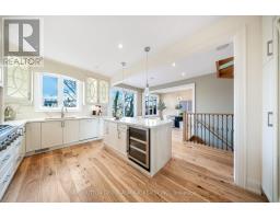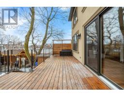 Nestled on a premium 35-foot lot siding onto green space, this newer custom-built home in South Etobicoke offers refined living in a family-friendly community close to all amenities. Boasting over 2,500 sq. ft. above grade, the bright open-concept layout features generous principal rooms, plentiful windows and skylights, a main floor office perfect for working from home (easily convertible to a 4th bedroom), a walk-out to an expansive deck overlooking the backyard, and a sprawling chef's kitchen showcasing a large centre island, top-of-the-line Thermador appliances, and designer cabinetry. Upstairs are three spacious bedrooms, each with its own ensuite, along with two large skylights. The primary suite includes a dressing room with built-closets and a 6-piece spa-like ensuite with dual rain showers, freestanding tub, heated floors, and large-format tiles. Second bedroom is large enough to function as a second primary. The walk-out basement features a self-contained in-law/nanny suite with separate entrance, kitchen, laundry, oversized windows, and radiant heating. Backyard is perfect for year-round entertaining and features a cabana (roughed-in for kitchen & bath), hot tub (included), and covered BBQ gazebo w/ gas hookup. Upgraded from top to bottom with luxurious finishes including wide-plank hardwood flooring, solid-core interior doors, built-in speakers, European fixtures, real wood trim, and 8" baseboards. A 10 kWh generator provides peace of mind during power outages. Parking for 4 cars. Amazing location just minutes from top-ranked schools, scenic parks and trails, Lake Ontario, recreation centres, shops, restaurants, and vibrant Long Branch Village. Commuting is easy via nearby streetcars, GO station, Gardiner Expressway, and Highway 427. Don't miss your chance to own a beautifully crafted home that checks every box in one of Etobicoke's most desirable neighbourhoods. (id:61594)