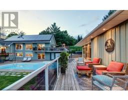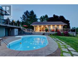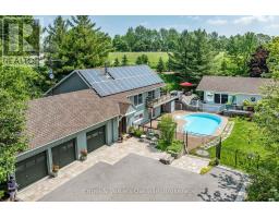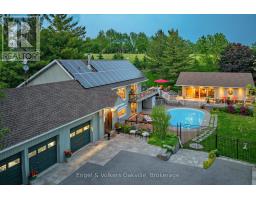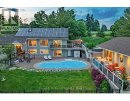 Experience country living on over 1 acre, just 40 min from Pearson Airport, with close proximity to the GTA & all amenities. This stunning 3 bed, 3 bath home + separate pool house with almost 3,700 sq.ft of living space, offers panoramic southwestern exposure with spectacular elevated views & infinite countryside from oversized windows on all levels. Abundant natural light floods the open-concept top floor living & dining areas, creating a serene atmosphere year-round. The heart of the home is the expansive chefs kitchen. Ideal for entertaining; offering ample counters for food prep, a separate pantry for storage, & seamless flow for gatherings, both large & small. Want some quiet time, simply open the secret bookcase door & discover a sumptuous den to relax in, or watch your favourite movie. The above grade lower level provides flexibility with 3 bedrooms, 5 piece bath with soaker tub, walk-out to the in-ground pool from the primary bedroom, & generous storage spaces. Step outside the main house on any level & you will find extensive multi-level cedar decking & rubaroc patio poolside as you make your way to a newly built fully winterized pool/guest house with kitchenette, 3 piece bath & walkouts to hot-tub, pool & deck overlooking the gazebo & fire pit. Whether you're hosting summer soirées or enjoying cozy seclusion in winter, this property offers the ultimate in lifestyle & comfort. Don't miss this rare opportunity. (id:61594)