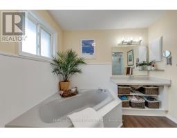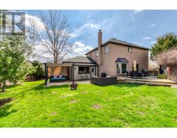 Welcome to this beautifully updated family home on a quiet Burlington court, offering exceptional privacy with a large backyard backing onto greenspace and a cabana bar-perfect for entertaining. Step inside to a bright and welcoming main level featuring stunning rift and quartered solid oak flooring, solid poplar trim, crown mouldings, pot lights, and custom built-ins that add both style and function.At the heart of the home is a fully renovated kitchen by Olympic Kitchens (2020) with quartz countertops, marble backsplash, double Franke sink, Kohler faucet, KitchenAid 48" fridge, beverage fridge, paneled dishwasher, wall oven, 36" Café induction cooktop, and built-in microwave-ideal for both everyday living and hosting. A stylish powder room with marble flooring and onyx sink, plus a renovated laundry room (2020), complete this level.Upstairs offers solid wood flooring in three bedrooms, a renovated main bathroom (2024), and a spacious primary with new carpet (2025), providing a comfortable retreat. The finished basement (approx. 800 sq ft) features pot lights, luxury vinyl plank flooring, a bathroom (2024), large storage area, and a cold room-perfect for recreation, guests, or a home office.Step outside to a private backyard oasis backing onto greenspace with a cabana bar-ideal for summer entertaining or quiet evenings outdoors.Updates include all windows and exterior doors (2020), soffits, fascia, eavestroughs (2020), a new roof (2020), and a rebuilt chimney (2020). Located close to top-rated schools, parks, trails, shopping, and major highways-this home offers the perfect blend of comfort, style, and convenience. (id:61594)