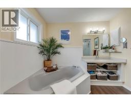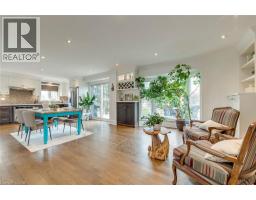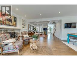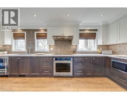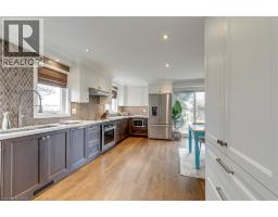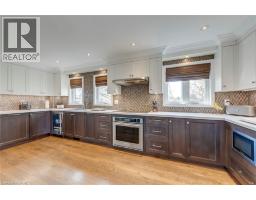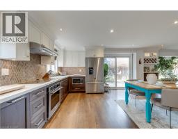 Welcome to this beautifully updated family home on a quiet Burlington court, offering exceptional privacy with a large backyard backing onto greenspace and a cabana bar—perfect for entertaining. Step inside to a bright and welcoming main level featuring stunning rift and quartered solid oak flooring, solid poplar trim, crown mouldings, pot lights, and custom built-ins that add both style and function. At the heart of the home is a fully renovated kitchen by Olympic Kitchens (2020) with quartz countertops, marble backsplash, double Franke sink, Kohler faucet, KitchenAid 48 fridge, beverage fridge, paneled dishwasher, wall oven, 36 Café induction cooktop, and built-in microwave—ideal for both everyday living and hosting. A stylish powder room with marble flooring and onyx sink, plus a renovated laundry room (2020), complete this level. Upstairs offers solid wood flooring in three bedrooms, a renovated main bathroom (2024), and a spacious primary with new carpet (2025), providing a comfortable retreat. The finished basement (approx. 800 sq ft) features pot lights, luxury vinyl plank flooring, a bathroom (2024), large storage area, and a cold room—perfect for recreation, guests, or a home office. Step outside to a private backyard oasis backing onto greenspace with a cabana bar—ideal for summer entertaining or quiet evenings outdoors. Updates include all windows and exterior doors (2020), soffits, fascia, eavestroughs (2020), a new roof (2020), and a rebuilt chimney (2020). Located close to top-rated schools, parks, trails, shopping, and major highways—this home offers the perfect blend of comfort, style, and convenience. (id:61594)