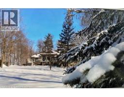 Welcome to 3314 Sandhills Rd. A beautifully renovated in 2007, Perfect mix of Wiarton Limestone/stucco, 3 + 1 bedroom walkout bungalow. Set on 7.21 acres of wooded property, features custom flagstone, aggregate drive, custom maple kitchen, marble countertops, hardwood finishes throughout. 13’ ceiling Living Room with floor to ceiling windows custom trimmed, with built in cabinetry accenting the adjacent custom cast limestone fireplace wall. Room to entertain, work and play with 2 concrete patios, 2 raised decks with glass railings. A 4000 sq ft heated shop with 18’ ceiling, 4 overhead doors, multi sport court, built in 2021. Bank barn with 3 overhead doors ideal for animals, hobbies or storage. Trails throughout mature hardwood bush for walking, skiing or ate. Home has optional heat of outdoor wood furnace. 8 mins from Costco, Waterloo Boardwalk amenities. 5 mins to Hwy 7&8, schools, 3 Golf North Properties and Wilmot Rec. Complex. 15 mins from 401 and 1 hr. West of GTA. (id:61594)