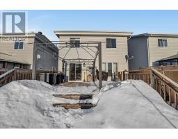 Solid, attractive and move-in ready, this well-maintained 3-bedroom home is ideally set on a quiet street in sought-after Rockland West-an exceptionally family-oriented neighbourhood where kids play, neighbours wave, and parks, paths and recreation are just a short stroll away. You'll also love being within walking distance to groceries, restaurants, Walmart, gyms and banks, making day-to-day life wonderfully convenient.Step inside to a bright, welcoming main level with solid hardwood and ceramic floors, a cozy gas fireplace, and an inviting living/dining area that flows beautifully to a renovated open-concept kitchen. The kitchen is a standout, featuring modern, bright cabinetry with tons of upgraded storage, a breakfast bar, premium stainless appliances, and gleaming quartz counters-perfect for busy mornings, weeknight dinners, or hosting friends and family. A patio door extends the living space outdoors to a nice deck and BBQ area from which to enjoy spectacular sunset views, Overlooking a private yard with patio, your own outdoor retreat for gardening, playtime, or relaxed evenings.The main floor also offers a convenient 2-pc powder room with laundry connections still in place behind an impressive built-in storage unit, providing excellent flexibility for future layout options. Upstairs, the spacious primary bedroom features a walk-in closet and cheater access to a stylish 4-pc bath with standalone shower and Roman soaker tub. Two additional bedrooms are generous and sun-filled.The professionally finished lower level adds valuable living space with a comfortable family room, an additional bath and plenty of storage in the utility room and under-stair space-ideal for growing families who need room to spread out. Smoke-free, wonderful neighbours, and a location that truly supports an active, family lifestyle-this one checks all the boxes. Flexible closing available. Easy to show. 24 hrs irrevocable on all offers. Super fast out in the morning for easy commute. (id:61594)
