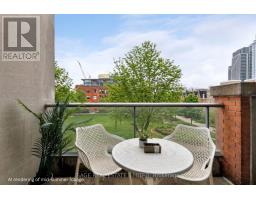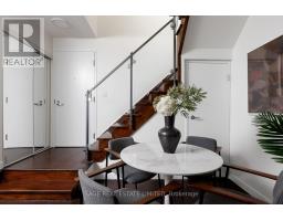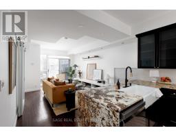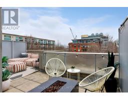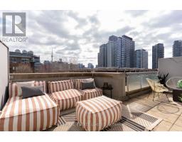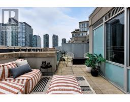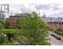 Tucked quietly above King St West, that good-part stretch where the city hums but never overwhelms, sits this rarely offered two-storey residence. Perched at tree level, it meets the birds eye-to-eye over Massey Harris Park. Not a townhouse. Not a typical condo. Something far more rare. Meet unit 332, on the market for the first time in 17 years. The scale hits you immediately. Generous, intentional. The layout is open, but not predictable. A dramatic living room is anchored by a striking East-facing view over the park's treetops, with a footprint designed for the kind of sofa you actually want to come home to. Built-ins add function and polish while pot lights on dimmers shift the mood from bright mornings to slower evenings. Step out to the balcony or leave it open just to hear the buzz of the city. A large bedroom sits just off the living space with custom barn doors that open for flow or close for privacy. The kitchen is purposeful and spacious (no narrow galley feel here) with a full suite of new LG appliances, Kohler country sink, and wine fridge. It's the kind of kitchen that actually makes you want to cook. A separate den adapts to whatever your life calls for: Dining room? Cozy TV nook? Work-from-home zone? You decide. Upstairs, the primary suite feels like its own retreat. Big enough for a California King and everything that goes with it, it holds the walk-in closet, a 4-piece bath, and a jacuzzi bathtub with a view. Then, what sets this home apart: two walkouts open to nearly 300 square feet of private terrace where the view expands beyond the park to a full skyline anchored by the CN Tower. Atop the building's podium, a solid concrete parapet frames the terrace to feel like a fenced backyard in the sky. Gas line, hose bib, multiple drains, space to garden, host, or simply be. With light moving from East to South, everything here has room to grow. Even you. (id:61594)