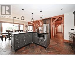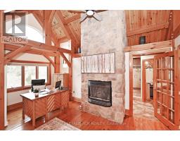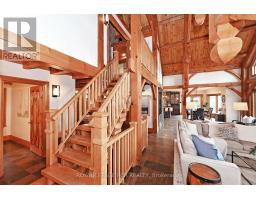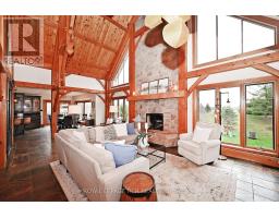 Set on approximately 7.7 acres of pristine countryside, 3327 9th Line is a breathtaking custom-built country retreat home, offering a perfect blend of rustic charm, modern luxury, and masterful craftsmanship. Natural elements refine this one-of-a-kind residence, surrounded by lush gardens and framed by sweeping landscapes. Featuring 3+1 bedrooms and 4 bathrooms , this stunning majestic architectural home welcomes you with grand lodge-style interiors enhanced by natural stone, rich wood beams, and exquisite millwork. The heart of the home is a soaring great room, showcasing a dramatic 33-foot stone fireplace and a full wall of windows that flood the space with natural ligth and panoramic views. The gourmet kitchen, blending old-world character with modern finishes, flows seamlessly to a spacious deck and BBQ area - ideal for outdoor entertainin against the backdrop of the expansive property. Upstairs, the private primary suite offers a true sanctuary, complete with a spa-like ensuite featuring a walk-in glass shower, soaking tub, and walk-in closet. The finished walkout basement extends the living space with a full bar, recreation room, gym area, guest bedroom, full bath, and a rejuvenating steam room for total relaxation. Enjoy cozy evenings gathered around two gas fireplaces or the charming wood-burning fireplace, with in-floor heating warming all tiled areas and a whole-house sound system providing ambience throughout. A spacious 3-car garage equipped with an EV charger, plus a fully self-contained loft apartment (complete with kitchen, bedroom, and bath), offers incredible flexibility for guests, family, or rental potential. Additional features include a Generac generator, large workshop shed, sprinkler system, fibre optic internet, and a wired security system - ensuring complete peace of mind. This is country living at its finest, where timeless natural beauty meets luxurious modern comfort in a truly unparalleled setting. (id:61594)
