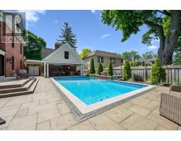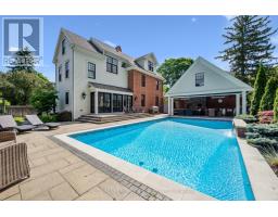 DISCOVER A LIFESTYLE OF REFINED LIVING AND UNCOMPROMISED QUALITY! HISTORIC WILLIAM H. MORDEN CENTURY HOME CIRCA 1900! Reimagined in 2012 through the award-winning collaboration of Gren Weis Architect, Whitehall Homes & Construction, Top Notch Cabinets, and Calibre Concrete, this remarkable residence blends heritage charm with contemporary craftsmanship. Extensive upgrades include new plumbing, 200-amp electrical, insulation, fire-rated drywall, and premium Pella and Kolbe windows and doors. The dream chef's kitchen showcases Gaggenau and Miele appliances, granite countertops, glass tile backsplash, illuminated display cabinetry, an oversized island with breakfast bar, built-in desk, pantry, and dual French door walkouts to the backyard oasis. The primary bedroom offers a walk-in closet and spa-inspired five-piece ensuite with dual sinks, soaker tub, and steam shower with body jets. The finished basement adds versatility with a cozy recreation room ideal for movie or game nights. Notable details include hydronic radiant heated tile flooring, built-in ceiling speakers, and dual HVAC systems with Carrier central air units and hydronic plenum heat exchangers. A rare bonus is the lofted two-car garage (2015) with separate electrical panel and roughed-in hydronic slab heating - perfect for a studio, office, or future guest suite. Outdoors, experience resort-style living in a professionally landscaped setting designed for year-round enjoyment. Entertain on the wraparound porch, custom deck, and natural stone patio, or relax by the impressive 19' x 36' saltwater pool. The full outdoor kitchen boasts Lynx appliances, pizza oven, woodburning fireplace, roll-down shades, and commercial-grade heaters. Additional conveniences include an inground sprinkler system and circular multi-car driveway. Ideally located minutes to St. Thomas Aquinas, Appleby College, downtown amenities, and the lake, this extraordinary property delivers an elevated lifestyle without compromise. (id:61594)