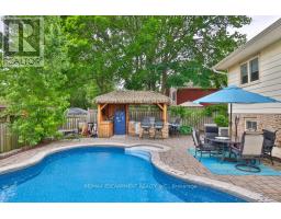 Located in the sought-after Palmer community, this beautifully updated 3+1 bedroom raised bungalow is an entertainer's dream. With thousands invested in professional landscaping, the backyard oasis features a saltwater pool and a custom-built Tiki Hut with a fully equipped outdoor kitchen-complete with a gas BBQ, gas stovetop, fridge, built-in storage, and multiple seating areas designed for relaxation and entertaining. Inside, you're welcomed into a bright and spacious living and dining area, alongside a sun-filled eat-in kitchen with walkout to a private side deck that leads seamlessly to the backyard retreat. The fully finished lower level includes a fourth bedroom, a large recreation room with a cozy woodburning fireplace, a bar, and a 3-piece bathroom-perfect for guests or extended family. Ideally located just steps to elementary schools, parks, shopping, and transit, this exceptional home offers the perfect blend of comfort, style, and outdoor luxury living. (id:61594)
