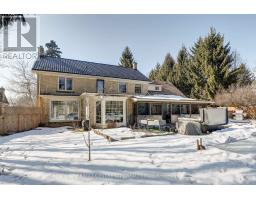This classic yellow brick 2 storey home offers stunning curb appeal and a timeless exterior beautifully complemented by modern updates. Situated on a l-shaped 0.95 acre lot, the property provides a private, peaceful setting nestled among mature trees and thoughtfully designed landscaping. Ideally located just minutes from Port Stanley and with easy access to Wellington Road. This oversized family home blends convenience with tranquility. Inside, you'll find a spacious and functional layout featuring four generously sized bedrooms and 3.5 bathrooms. The primary master suite is complete with a luxurious ensuite featuring a heated floor. The bright living room is filled with natural light from large windows and anchored by a cozy gas fireplace. A generous dining area provides the perfect space for entertaining, while the inviting main floor layout is enhanced by large windows that allow for natural light throughout. The updated modern kitchen showcases granite countertops, a peninsula with breakfast bar and a clean, modern finish. A main floor office adds flexibility for those working from home. Peaceful evenings can be enjoyed in the charming cedar sunroom. A warm and inviting space to relax and take in the surrounding views. Extensive updates provide both style and peace of mind, including remodelled kitchen and bathrooms, soffit and fascia, A/C, furnace, durable metal roof, new flooring in bedrooms and bathrooms, and updated windows. (id:61594)