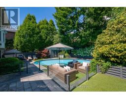 This is the one! 34 Forest Ridge Drive checks all your boxes beginning with its stunning curb appeal. Situated on a 59' wide lot on this quiet and most coveted street in upper Forest Hill Village, this sophisticated home features 4+1 bedrooms, a main floor office, a main floor family room and a main floor powder room. The welcoming foyer with large closet invites you into an elegant living space where you can relax and entertain. The living room is bright with a gas fireplace and views of the stunning back yard with pool and beautiful garden. The stylish dining area is spacious enough for large dinner parties yet intimate enough for smaller ones. The incredible eat-in kitchen features stainless steel appliances, Caesarstone countertops, two built-in Wolf gas ranges, two Miele dishwashers, a Sub-Zero fridge, two built-in warming drawers, Avantgarde wine cooler and more. The main floor is hardwood throughout with beautiful views overlooking the backyard pool and garden. Upstairs the gorgeous large primary bedroom has a vaulted ceiling, a sizeable seating area and a six-piece en-suite with heated floors. There is a walk-in closet and two double closets as well as abundant additional storage in the ensuite. There are three additional upstairs bedrooms. Bedroom 2 features a tandem room and 4 double closets with built-in storage. Bedrooms 3 and 4 each has two double closets with built-in storage. The basement rec room is large with good ceiling height. There are an additional bedroom, bathroom and a cedar closet on the lower level. The laundry room is spacious and storage is abundant. This is a great location with close TTC and highway access. Walking distance to shops, good schools, parks, the Beltline Trail, Cedarvale Ravine and more. (id:61594)
