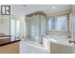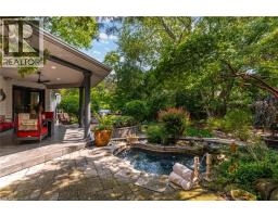Located on a quiet court in Ancaster’s prestigious Oakhill neighbourhood, 34 Harrington Place is a one-of-a-kind bungaloft designed for elegant living and unforgettable entertaining. Set on a pie-shaped, nearly half-acre lot with an impressive 217 ft across the rear, this custom-built Atherton home is surrounded by estate properties and award-winning Trillium gardens that elevate the curb appeal and outdoor experience. Boasting almost 5,000 sqft of impeccably finished living space, this home offers 3+1 bedrooms, 4 full baths, and a layout that perfectly blends everyday comfort with timeless sophistication. The main floor features a gourmet eat-in kitchen with custom cabinetry, cathedral ceiling, and access to a covered porch, flowing into a striking 12-ft great room with gas fireplace and floor-to-ceiling windows overlooking the oasis backyard. A formal dining room provides the ideal setting for hosting family gatherings and elegant dinner parties. The luxurious main-floor primary suite includes a cozy gas fireplace, an oversized walk-in dressing room, and a 5-pc spa-inspired ensuite. Also on the main level: a large private office, a full laundry room, and a stylish guest bath with direct outdoor access—perfect for rinsing off after a dip in the custom-designed hot and cold soaker pool spa or post-garden clean-up. Upstairs, two well-appointed bedrooms, a full bath, and a versatile loft area offer space for teens, guests, or a second home office. The bright walk-out basement features a 3-sided gas fireplace, spacious recreation room, kitchenette/bar, 4th bedroom, full spa bath, gym area, and abundant storage—ideal for in-laws or extended family. The backyard is a showstopper: private, lush, and tailored for gatherings large or small. Multiple seating and dining areas, a covered porch, and the signature pool spa create an outdoor sanctuary you’ll enjoy in every season. This is more than a home—it’s a statement of lifestyle in one of Ancaster’s most exclusive enclaves. (id:61594)