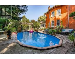 Circa 1911 with visual echoes of the past; leaded art-glass windows, pocket doors, coffered wood beam ceiling, 5 fireplaces, & tireless attention to architectural detail. Unique & spacious open-concept kitchen/living space with flow. This gourmet kitchen features granite countertops, under-mount sink, 6-burner gas range, double built-in oven, under-cabinet lighting, interior cabinet lighting, large island, connected grand living room with fireplace, & nearly floor to ceiling windows provide stunning view of your landscaped backyard resort. Luxurious living continues on the second floor with a spacious primary bedroom with fireplace, 3additional bedrooms, 4-piece bathroom, & walkout to rooftop terrace. Living space just keeps on going with a huge third floor that is perfect for entertainment/games room, home office, art studio, teen loft space, or boomerang kid apartment. Large, high basement with studio apartments and office, with private side door entrance. Who needs the Caribbean when you have this backyard? Fishpond, cabana, on-ground pool, gazebo, & lounge areas. Repeat after me: "backyard envy." Oversized front porch is perfect for morning coffee or evening cocktail. Double lot (almost 80ft.frontage) with mindful landscape design gives this home an impressive street presence. Lush streetscape. Walk to Bruce Trail, Gage Park, Rosedale Tennis Club,$25 million Bernie Morelli Recreation Centre & Jimmy Thompson Memorial Pool, transit, & schools. (id:61594)