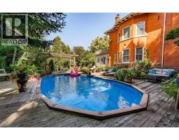Circa 1911 charm meets modern comfort in this beautifully updated home, where leaded art-glass windows, coffered ceilings, and five fireplaces set a gracious tone. On an 80 x 104 ft lot, the home offers over 5,300 sq. ft. with 6 bedrooms and 4 baths. The open-concept kitchen and living area features granite counters, a six-burner gas range, double built-in ovens, and a grand living room overlooking the backyard through near floor-to-ceiling windows. Recent updates include a fully revamped lower level with flexible studio or family-room space, a nanny suite with kitchenette, a modern three-piece bath with walk-in rainfall shower, an enclosed laundry room, and new PVC piping. Upstairs, the primary bedroom with fireplace provides a serene escape, joined by three additional bedrooms, a four-piece bath, and a walkout to a 520 sq. ft. rooftop terrace. The third floor adds even more versatility, with a kitchenette, 2 pc bath, sitting nook, and a generous lounge—ideal for creative work, teens, guests, or movie nights. Outside feels like a private retreat, with a fishpond, cabana, on-ground pool with newer filter and liner, gazebo, refreshed decking, lounging areas, and new grass. A repainted front porch and new gate boost curb appeal. Did I mention the double 80-ft frontage lot? Offers potential for severance and is perfect for multi-generational living. Set on a lush double lot, the home is steps from the Bruce Trail, Gage Park, Rosedale Tennis Club, the Bernie Morelli Recreation Centre, transit, and schools. If your current home feels tight, this one offers room for everyone to breathe and enjoy their own space. (id:61594)