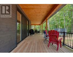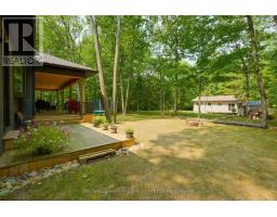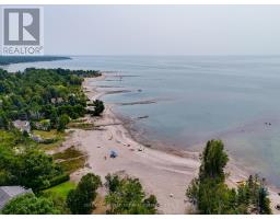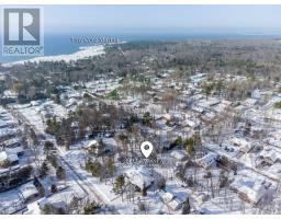 Welcome to refined beachside living in the heart of beautiful Tiny Township. This exceptional custom-built ranch bungalow, completed in 2021, is thoughtfully positioned on a private, treed 100 x 150 ft lot where every detail reflects uncompromising quality and craftsmanship. The striking exterior showcases an elegant blend of stone and Maibec siding, anchored by an impressive 42' fiberglass front door. A generous covered front porch and an expansive 600 sq ft covered wraparound deck-complete with pot lights and tongue-and-groove ceiling-create an inviting space for year-round enjoyment. Inside, nearly 2,100 sq ft of impeccably finished living space offers timeless sophistication. Rich oak hardwood floors flow throughout, complemented by soaring 10' ceilings in the living area and 9' ceilings elsewhere, heated bathroom floors, and 8' interior doors. The stunning designer kitchen is a true showpiece, featuring an oversized centre island, gas range, 48" upper cabinetry, and a charming bay window overlooking the serene backyard. The open-concept living and dining area is perfect for entertaining, highlighted by a gas fireplace and double sliding patio doors that seamlessly connect indoor and outdoor living. The luxurious primary retreat offers a walk-in closet, spa-inspired 4-piece ensuite, and private access to the deck through additional sliding doors. The expansive 1,900+ sq ft unfinished basement with bathroom rough-in presents endless potential for customization. Additional conveniences include inside entry from the garage to the laundry room. Ideally located within walking distance to two pristine sandy beaches, minutes from the local marina, and a short drive to Awenda Provincial Park and Midland, this remarkable home offers the perfect blend of tranquility, luxury, and lifestyle. Whether as a refined cottage retreat, elegant downsizing opportunity, or forever family home, this is beach living at its finest. (id:61594)