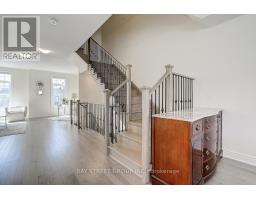 A rare offering of a beautifully upgraded townhouse featuring an impressive 2,400 sq.ft. of functional layout ,Featuring 9-ft ceilings on both the main and second floors, providing a bright and open atmosphere throughout. The main floor includes a bedroom with a full bathroom, ideal for extended family, guests, or a home office setup. Interior highlights include hardwood flooring throughout and a staircase finished with wrought iron pickets. The modern kitchen is equipped with stainless steel appliances, center island, and breakfast area, and opens to a sun-filled family room with large windows, perfect for everyday living and entertaining. The spacious primary bedroom features a 5-piece ensuite and a large walk-in closet. Conveniently located with easy access to Hwy 407 & 401, top-rated schools, parks, golf courses, and a wide range of amenities including major shopping centres, big box retailers, and banks. (id:61594)