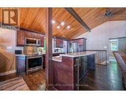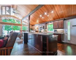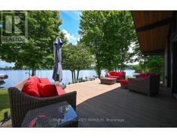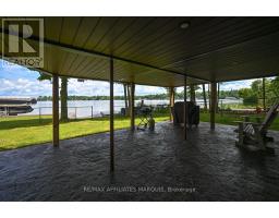 Welcome to your turnkey waterfront retreat on the breathtaking shores of Lower Rideau Lake! This impeccably maintained and thoughtfully updated home is nestled in one of Eastern Ontario's most sought-after waterfront communities, offering miles of lock-free boating on both Lower and Big Rideau Lakes. Cruise to picturesque destinations like Rideau Ferry and Portland to enjoy lakeside dining and vibrant waterfront culture. Set on a beautifully landscaped lot with stunning views down the lake, this property features a premium seawall with stamped concrete detailing, a new dock, boat lift, and a private boat slip ideal for the avid boater or lakefront enthusiast. Enjoy morning coffee or evening cocktails from your upper deck, finished with durable Duradek flooring and sleek InvisiRail glass railings for unobstructed lake views. Inside, the open-concept main floor has been tastefully updated with engineered hardwood flooring throughout. The modern kitchen flows seamlessly into the dining and living areas, creating a bright and airy atmosphere with panoramic lake views. Two spacious bedrooms are accompanied by two stylishly renovated full bathrooms, offering comfort and function for family and guests alike. The lower level offers even more living space with a walk-out family room complete with a cozy gas fireplace, a two-piece bath, and generous storage/utility areas. Step outside to a covered, stamped concrete patio perfect for entertaining or relaxing in the shade while taking in the peaceful lakefront setting. A detached two-car garage provides ample parking and could easily double as a home gym or workshop. The partially fenced yard offers space for kids and pets to play safely. Whether you're looking for a full-time residence or a four-season getaway, this exceptional waterfront home combines modern comfort, natural beauty, and recreational lifestyle in one unbeatable package. Don't miss your chance to own a slice of Rideau paradise! (id:61594)
