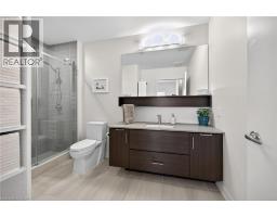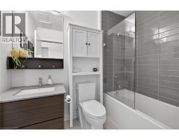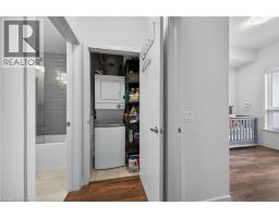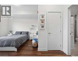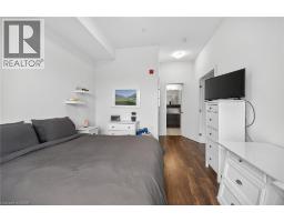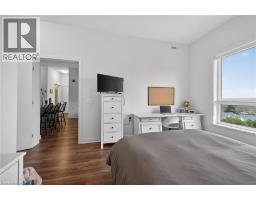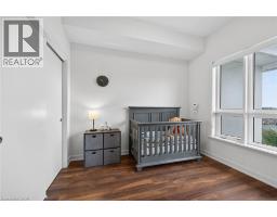 Clean, bright, & spacious 2-bedroom, 2 full bathroom, top-floor unit with west-facing, unobstructed views, set away from the hustle & bustle of Plains Rd. Offering 860sqft (just over 900sqft per builder plans), this layout matches other 2-bedroom units that have sold recently for $540,000+. The bright, open-concept design features a kitchen with peninsula overlooking the living area with patio doors leading to the private balcony. The large primary bedroom is thoughtfully positioned on one side of the living space & offers enough room for a work-from-home setup. It includes a walk-in closet & 3-piece ensuite with walk-in shower. On the opposite side, the second bedroom is across from a full 4-piece bathroom. Additional features include large coat closet, a stackable washer/dryer in a separate closet, one owned parking space & locker. A second parking spot can be rented, with potential to purchase. Residents enjoy excellent building amenities, including ample visitor parking, two EV chargers, a rooftop patio with BBQs & lounge areas, a pet relief area, two gyms & two party rooms (one in each building). Located in a highly walkable area close to parks, the marina, tennis courts, schools, shops & restaurants. Just minutes to Aldershot GO Station, HWY 403, & the QEW. (id:61594)