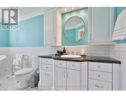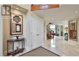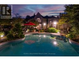 Set on a breathtaking 70'x209' private lot in Burlington's prestigious Roseland community, this stately stone and stucco home offers over 5,850 sq ft of finely curated living space across three levels. Showcasing timeless elegance and old-world craftsmanship, this home impresses with custom millwork, plaster crown mouldings, custom built-ins and rich hardwood, limestone and porcelain floors. Step into a grand foyer that leads to elegant formal dining and living rooms with a gas fireplace then discover the heart of the home: a chef's dream kitchen featuring a sprawling island, top-of-the-line appliances, walk-in pantry, sunlit breakfast area with a walk out to the stunning gardens. Adjoining the kitchen is the great room with a two-storey ceiling, gas fireplace and a wall of windows framing your own backyard paradise. The main level also features a home office, stylish powder room and custom mudroom with access to an oversized double garage with epoxy floors. Upstairs, unwind in your primary retreat with vaulted ceilings, sunlit walk-in closet and luxurious 4-piece spa-inspired ensuite with steam shower. A loft-style library with built-in bookcases overlooks the great room and three more spacious bedrooms include a private guest suite, a shared 4-piece bath and convenient upper-level laundry. The lower level features a home theatre room, hobby room, second laundry, fitness studio with beverage centre and 3-piece bath and storage. Outside, the resort-style backyard is an entertainer's dream featuring a 20'x40' saltwater gunite pool ('19), stucco pool house ('15) with kitchenette, change room and garden storage, a pergola-covered stone patio ('19) with gas fireplace, dramatic landscape lighting and tranquil stone water feature, surrounded by stunning, lush, mature gardens. Just steps to top schools, parks, downtown and the lake, this distinguished home with its meticulous attention to detail exudes warmth and comfort and will appeal to the most discerning buyer. (id:61594)