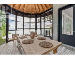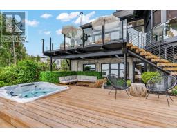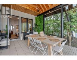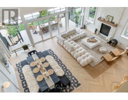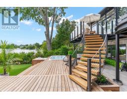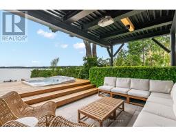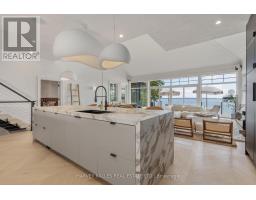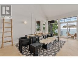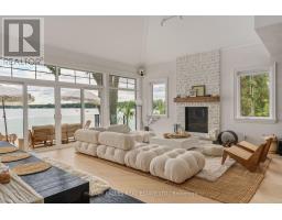 A rare architectural luxury waterfront residence blends concrete, glass, steel, and warm wood to create a one-of-a-kind Boho-modern retreat. Privately set off one of the finest sought after lakefront streets in Innisfil on Lake Simcoe, the home opens with a grand custom wood entry door into a dramatic space with polished concrete floors and soaring 20-foot ceilings layered in custom hung chandeliers. Walls of floor-to-ceiling glass and accordion-style doors blur the line between indoors and out, flooding the home with natural light and showcasing unobstructed lake views.A floating wood staircase /glass railings and custom finishes throughout reinforce the homes refined modern aesthetic. The gourmet kitchen is a showpiece with bespoke cabinetry, a large waterfall centre island, full service butlers pantry, and designer lighting. The expansive great room, with vaulted ceilings and statement fireplace, serves as the heart of the home framed by wall to wall south-facing windows capturing a panoramic lake view. Resort-style outdoor living is second to none. A two-story screened-in porch with glass, walk out to terrace lead to tiered entertainment spaces: a sun deck, custom wrought-iron stairway, built-in wood fire pit, hot tub, covered lounge areas, boathouse and putting green. Flagstone steps provide a gentle slope to the waters edge for seamless lake access.The lower level was designed for entertaining, featuring a recreation room with bespoke paneling, a backlit glass staircase, spa-inspired bath, and a concrete sit-up bar. With five bedrooms and multiple living and lounging areas, this property offers unparalleled space for family and guests.A truly rare offering modern design, resort amenities, and a world-class waterfront lifestyle converge in this extraordinary estate. ONE OF A KIND SHOWS A 10! (id:61594)