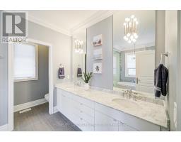 Welcome to luxury living in the exclusive Royal Oakville Club, a prestigious community in South Oakville. Built by Fernbrook in 2016, this spectacular residence boasts 4+1 bedrooms, including 2 master suites W/ private ensuites, 5 bathrooms and approximately 3500 sq ft above grade plus the finished basement.This home offers 10-foot main floor ceilings, 9-foot ceilings on the second floor, extensive custom millwork, hardwood flooring throughout, deep baseboards, chic lighting and potlights. The stunning gourmet kitchen, custom Downsview cabinetry, large island with seating for 5 & built-in Wolf & Sub-Zero Appliances. The spacious bright family room features large windows, a natural gas fireplace, built-in wall unit with additional storage and shelving space and has a Walkout to a covered porch. Formal Dining & living rooms with coffered ceiling. Laundry room can serve as mudroom W/ access to the Garage and big closet. Upper level features four generous bedrooms, including two expansive master suites, each with spa-like ensuite baths and custom closets, enhancing the home's functionality and appeal. Lower level finished W/a great open concept gym, a recreation room an extra bedroom W/ closet and a full bathroom and a lot of storage space. Professionally landscaped front & back yards W/ a large Springfree trampoline.Galvanized Steel garage doors W/ aluminum capping.Close to Appleby College and top-rated public schools, Lake Ontario, downtown Oakville, community center, theatre, library, waterfront trails, Fortinos, Dorval Crossing shopping center, restaurants, highways & GO station. (id:61594)