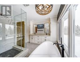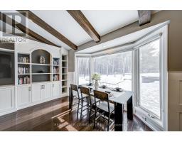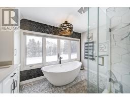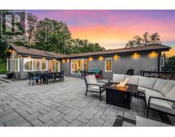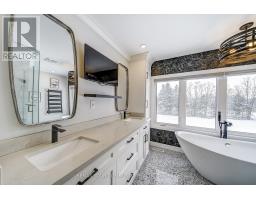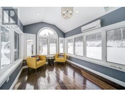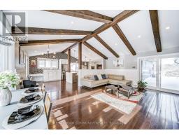 Discover serene, resort-style living just minutes from city conveniences. Set on a private 10-acre wooded estate, this renovated open-concept bungalow offers exceptional seclusion, tranquility, and space to unwind. The expansive outdoor setting is designed for relaxation and recreation, featuring an oversized patio for alfresco dining, hot tub, outdoor sauna, tranquil reading area, and a separate artist's studio. Meandering trails wind through your own private forest, creating a true nature retreat. Inside, the home showcases approximately 2,400 sq. ft. of beautifully updated living space, plus an unfinished walkout basement with endless potential. The modern chef's kitchen is the heart of the home, highlighted by a large quartz island ideal for entertaining, meal prep, or casual dining. Premium appliances include a Thermador double wall oven, gas cooktop with pot filler, LG smudge-resistant refrigerator with ThinQ technology, and dual stainless steel apron sinks. Luxurious finishes continue throughout with heated floors, custom blinds, built-in cabinetry in the family room, wainscoting on the main floor, and spa-inspired bathrooms. Recent upgrades include a new kitchen and bathrooms, heated floors in the entrance and bathroom, and extensive landscaping. Ideally located minutes to Sharon, Newmarket, and Highway 404, this exceptional property offers privacy, comfort, and refined country living with city access. (id:61594)