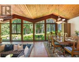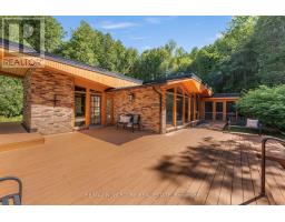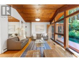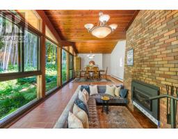 Welcome to 3435 Greenwood Rd sitting on this distinguished private lot (235.20 ft x 377.76 ft). Nestled in the peaceful village of Greenwood, this one-of-a-kind architectural custom-built home offers privacy, character, and outdoor beauty on a lush 2.01 acres. With 2,505 sq ft of finished living space, this home blends timeless design with natures tranquilly. Inside, enjoy floor-to-ceiling windows, solid cedar ceilings, and a sunken seating area with a natural gas fireplace. The living room features historic Casa Loma oak pegged hardwood, while the skylit kitchen flows into open-concept dining and living areas. Three spacious bedrooms are on the main floor, plus a private lower-level 4th bedroom perfect for guests or in-laws. Outdoor living is a dream with 925 sq ft of decking, a screened gazebo, a 335 sq ft patio, a 755 sq ft pool patio with casita, and a stunning 30' x 40' hexagonal pool. The grounds include mature trees, garden patios, and a second well providing an unlimited water supply. A spacious outbuilding with Hydro service provides an additional 490 sq feet of vehicle storage /workshop space  **Key features: Circular, double driveway (repaved 2023)Two-door garage (490 sq ft) + tool storage. Detached 2-car outbuilding/workshop (465 sq ft) with hydro service. Pool hut for storage (80 sq ft) Natural gas furnace and central A/C New asphalt & commercial-grade roofs (2015 & 2023) Updated plumbing & electrical (dates unknown)Underground Electric and High Speed Internet Cable Walk to Greenwood Conservation Area, Valley View Public School, and the future Pickering Heritage Centre (2026). Quick access to Hwy 407/401.A rare offering where history, privacy, and lifestyle converge in one of Pickering's most treasured communities. (id:61594)