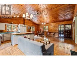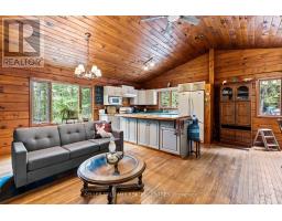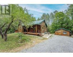 Escape to nature with this stunning 2+1 bedroom custom log home, set on 6.8 acres of private, park-like property just minutes from Chandos Lake & the Town of Apsley. Surrounded by a beautiful forest with trails to explore, this retreat offers the perfect balance of seclusion and convenience. The spacious main floor features an open layout with stunning wood accents & vaulted ceilings, creating a warm and inviting atmosphere. Enjoy the charm and craftsmanship of log construction paired with the comfort of modern living. The full, partially finished basement with walkout provides additional living space and direct access to the backyard patio perfect for entertaining or simply relaxing in the peace and quiet. Whether you're looking for a serene getaway from the hustle and bustle or a year-round residence, this property offers endless possibilities. With its private location just off the main road and close proximity to the water, you'll experience the best of country living while still being within easy reach of amenities. This home is well-equipped for year-round comfort and peace of mind, featuring a steel roof, a forced-air electric furnace, a woodstove, and a backup generator to keep you cozy during any power outage. The detached garage is a perfect man cave or workshop, complete with its own propane furnace and a durable, maintenance-free steel roof. Additional outbuildings and sheds provide endless possibilities for storage, hobbies, homesteading, or even a small hobby farm. (id:61594)