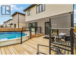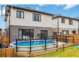 Welcome to your next chapter in the vibrant Copperfield neighbourhood! Built by Birchwood Homes, this beautifully maintained home offers 3 bedrooms, 2.5 bathrooms, and a thoughtful layout. Inside, you're greeted by 9' ceilings and a spacious open-concept main floor. A convenient mudroom and laundry combination adds practicality. At the heart of the home is the upgraded kitchen featuring extended cabinetry, quartz countertops, a 68" island, and luxury KitchenAid appliances including a built-in oven, microwave, and induction stovetop. A grand 74" fireplace anchors the warm and inviting family room. Other upgrades include premium fitted window coverings (motorized shades or California shutters) throughout the main and upper levels. Upstairs, a generous landing area offers the perfect flexibility for a potential workspace or lounge area. The primary suite features an ensuite with a double vanity and spacious walk-in closet. Two additional bedrooms are ideally situated, with one offering another walk-in closet and direct access to a shared 4-piece walkthrough bathroom. Step outside and discover a true backyard oasis. An above-ground 12x8' pool (2021) is seamlessly built into the custom deck with premium glass railings. Enjoy exceptional privacy with no rear residential neighbours and a fully fenced yard. The exterior also features a double-wide upgraded concrete driveway and garage completed with epoxy flooring and cabinetry. For added peace of mind this home is covered under Tarion's 7-year MSD warranty until June 2027. Commuting is easy with quick access to Highway 401 / 402 and LHSC Victoria Hospital. Retail options include Westwood Centre, White Oaks Mall and the South London Costco. Those seeking recreation will appreciate the proximity to the StarTech Community Centre and YMCA / Bostwick Arena and the prestigious Highland Country Club. For something even closer to home, Smash Pickleball is a short walk away. Don't miss this opportunity, schedule your showing toda (id:61594)