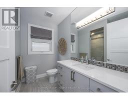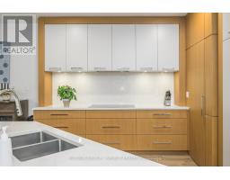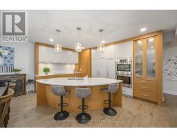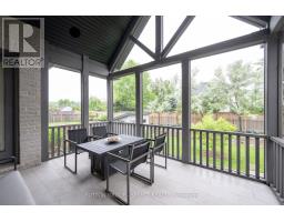 2250 sq. ft. of bespoke design wrapped in natural stone, warm woods, and thoughtful contemporary detailing. From the moment you step inside, the single-storey layout unfolds with clean lines, layered textures, and intentional flow. The great room is anchored by a 15-ft vaulted ceiling and a striking porcelain media wall with an integrated linear fireplace. Quarter-sawn hardwood runs throughout the main living spaces, grounding the palette in warmth and texture. In the kitchen, ceiling-height cabinetry blends soft grey flat panels with the combed grain of Rift-sawn White Oak. Quartz surfaces, integrated appliances, a sculptural 6-seat curved island, and hidden pantry access all contribute to a space that's both functional and refined. The adjacent dining area leads to a Muskoka room that invites relaxed indoor-outdoor living. The primary suite features oversized six-pane windows that draw in natural light. A spa-style 5-piece ensuite enjoys double sinks, triple vanities, heated floors & a deep soaker tub wrapped in textured porcelain that continues across the wall to envelope the curb-less, seated, glass shower. Two additional bedrooms include generous closets and share a beautifully finished main bath. The powder room introduces a tactile design moment with its organic cork wall treatment. A custom switchback staircase wood-framed and glass-paneled leads to the finished lower level where lookout windows bring in plenty of natural light. 1,656 sq. ft. of additional living space includes a central games room, inviting family room, office with private outdoor entry (ideal for a home business), guest bedroom, gym/flex space, and a 2-piece bath pre-framed and plumbed for shower option. Outside, the backyard is framed by mature trees and offers multiple areas for dining, lounging, and quiet retreat created through designer hardscaping. Set in the Meadowlands of Sunningdale, close to golf, forested trails, shopping, Western University, and University Hospital. (id:61594)