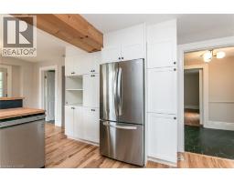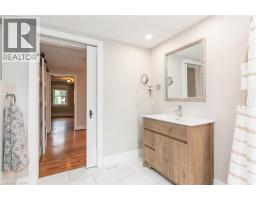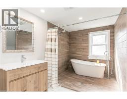 This beautifully restored (& easily converted back to 3 bedroom) Farmhouse seamlessly blends timeless character with modern upgrades. Set well off the road, on a generous 2/3 acre lot, the property offers privacy, space & incredible potential - all just minutes from amenities & 401 highway access. The heart of the home is the skillfully renovated kitchen, showcasing rich indigo cabinetry, maple counter tops, new SS appliances, floating shelves, and breakfast bar. With a raised sink and vintage tile, the spacious main floor powder room complements the farmhouse feel. The main living & dining areas showcase classic trim work, large new windows & garden doors that lead to the remodeled covered porch – perfect for enjoying tranquil views of mature trees, lilacs, raspberry & mulberry bushes alongside frequent visits from birds & local wildlife. Upstairs, the expansive primary suite offers flexibility – keep it as an impressive retreat, add a nursery or creative space, or easily convert the home back into a 3 bedroom layout. The breathtaking, spa-inspired bathroom features a freestanding soaker tub, large open walk-in shower, private water closet & ample storage. A conveniently located second floor laundry room comes complete with new appliances (a 2nd set in bsmt!) & a tub/shower combo for everyday conveniences. Step out onto the upper balcony to enjoy views of the park & nearby trails. Hardwood floors throughout & lighting fixtures thoughtfully chosen to complement the rustic charm. Freshly painted from trim to ceiling, this home is move-in ready! The expansive lot offers room to dream – consider adding a pool, workshop, or exploring the possibility of a secondary dwelling unit, with ample parking for 4+ vehicles & a detached garage. Ideally located across from the community center (with pool!) & no back neighbours! This is more than a home – it’s a lifestyle! Come experience the perfect blend of City conveniences & country charm. Don’t miss the chance to make it yours! (id:61594)