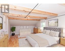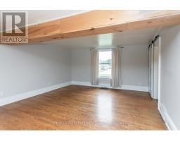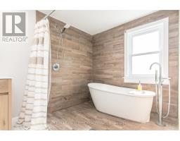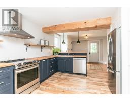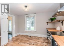 This beautifully restored Farmhouse seamlessly blends timeless character with modern upgrades. Set well off the road, on a generous 2/3 acre lot, the property offers privacy, space & incredible potential - all just minutes from amenities & 401 highway access. The heart of the home is the skillfully renovated kitchen, showcasing rich indigo cabinetry, maple counter tops, new SS appliances, floating shelves, and breakfast bar. With a raised sink and vintage tile, the spacious main floor powder room complements the farmhouse feel. The main living & dining areas showcase classic trim work, large new windows & garden doors that lead to the remodeled covered porch perfect for enjoying tranquil views of mature trees, lilacs, raspberry & mulberry bushes alongside frequent visits from birds & local wildlife. Upstairs, the expansive primary suite offers flexibility keep it as an impressive retreat, add a nursery or creative space, or easily convert the home back into a 3 bedroom layout. The breathtaking, spa-inspired bathroom features a freestanding soaker tub, large open walk-in shower, private water closet & ample storage. A conveniently located second floor laundry room comes complete with new appliances (a 2nd set in bsmt!) & a tub/shower combo for everyday conveniences. Step out onto the upper balcony to enjoy views of the park & nearby trails. Hardwood floors throughout and lighting fixtures thoughtfully chosen to complement the rustic charm. Freshly painted from trim to ceiling, this home is move-in ready! The expansive lot offers room to dream consider adding a pool, workshop, or exploring the possibility of a secondary dwelling unit, with ample parking for 4+ vehicles & a detached garage. Ideally located across from the community center (with pool!) and no back neighbours! This is more than a home its a lifestyle! Come experience the perfect blend of City conveniences and country charm. Dont miss the chance to make it yours! (id:61594)