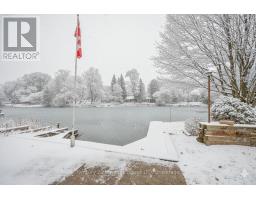 Discover the charm of creekside living in this spacious 4-bedroom, 4-bath, 2-storey home nestled along the scenic Black Creek. A welcoming covered front porch leads into a bright foyer with a curved staircase to the upper level. The main floor features gleaming hardwood floors, wood doors throughout, and stylish California shutters. The family room offers a cozy gas fireplace and sliding doors to the large rear deck perfect for relaxing or entertaining. Enjoy a formal living room and dining room for gatherings, and a bright eat-in kitchen with plenty of cabinetry and hard-surface counters. A main-floor laundry room and 2-piece bath add everyday convenience. Upstairs, the primary suite includes a 3-piece ensuite and walk-in closet. Three additional bedrooms each offer double closets and share a spacious 5-piece bath with double vanity. The finished lower level provides even more living space with a recreation room, 3-piece bath, workshop, and a second walk-out. Additional features include an updated roof, windows, furnace, and A/C; a concrete driveway; and an attached 4-car garage (double wide and double deep) with walk-out access and gas powered heater in the main garage. Outside, enjoy a shed by the creek and a private U-shaped dock/deck ideal for your morning coffee, evening chats, or docking your boat. This rare property offers the perfect blend of comfort, space, and creekfront tranquility! (id:61594)
