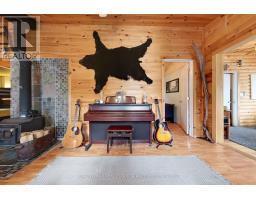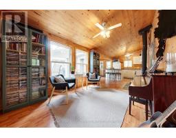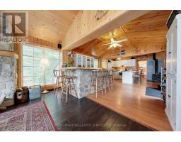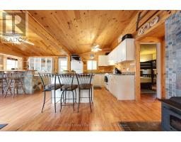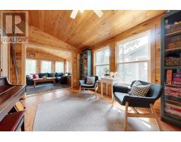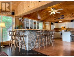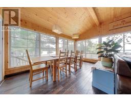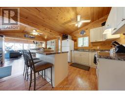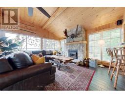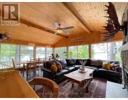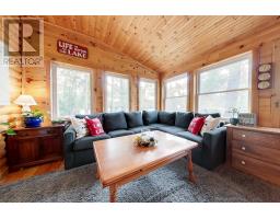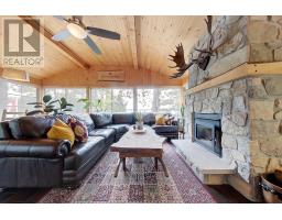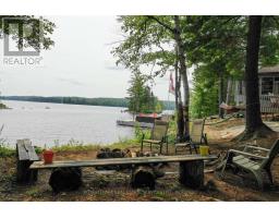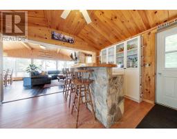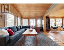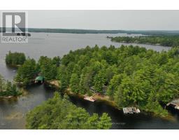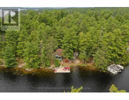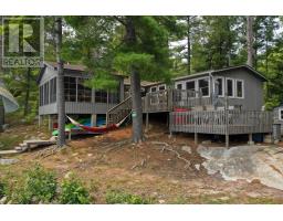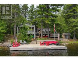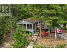 A tranquil lakeside retreat awaits. Nestled in a quiet bay, this thoughtfully designed turnkey bungalow offers everything you could want in a cottage getaway. From the expansive 16x20 dock, enjoy breathtaking views of the open lake and a picture-perfect lighthouse. After a refreshing swim, warm up in the lakeside sauna and embrace the peace of cottage life. Inside, the spacious great room with its natural stone fireplace creates a cozy atmosphere that invites connection and conversation. A wall of Sunspace windows floods the space with natural light and frames the stunning outdoor views, blending indoor comfort with natures beauty. The open-concept layout is perfect for entertaining, with clearly defined areas for dining and lounging. The kitchen island becomes the hub of activity during meal prep, while a second wood stove near the kitchen adds rustic warmth after a day of adventure. Just off the kitchen, a built-in wet bar offers the ideal place to unwind with a drink in hand.For a quieter moment, retreat to the second living room, perfectly tucked away for reading or relaxing away from the main gathering space. With 200 feet of waterfront, theres something for everyone shallow sandy areas ideal for children, deep clear waters for swimming, and a nearby island just a few strokes away for those craving a bit of exploration. Two bunkies provide extra accommodations for guests, and a U-shaped dock offers ample boat parking. This is the kind of place where summers turn into lifelong memories. Private level lot. In a bay tucked away from big water traffic. Pristine deep lake with granite shoreline surrounded by old-growth forests. Fantastic fishing and community spirit. A short boat ride in. Excellent marina services nearby. (id:61594)