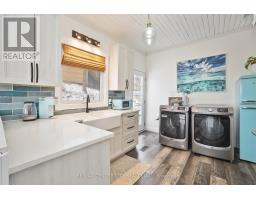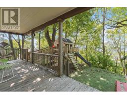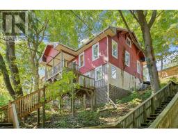 Treetop oasis in the quaint beach community of Port Stanley offers a unique destination appealing to those seeking a short-term getaway or family destination, merely steps from the beach & beautiful shores of Lake Erie. This high demand, income generating property with proven success & approximately 50K of annual revenue provides the best of BOTH worlds for those eager to acquire a vacation home while maintaining the opportunity to generate rental income when not occupied for yourself. WIN-WIN! With breathtaking, panoramic views of Main Beach to the South and Little Beach to the East, this property will captivate each visitor. A peaceful retreat, perched elevated amongst the trees, this is your chance to own your own piece of paradise! Bright oversized windows overlook a newly built deck where you'll experience the soundtrack of waves & spectacular water vistas. Plenty of seating in the dining area ensures a crowd can be hosted with ease. A functional kitchen includes fully updated finishes with chic new cabinetry, stylish new appliances, laundry & access to side yard. Generous living room includes three large patio sliders with gorgeous views of the lake & cozy wood burning fireplace. Primary bedroom includes multiple bright windows & private ensuite with free standing tub. Head upstairs to discover two additional bedrooms as well as updated 3PC shower. Significant renovations completed including updated Northstar windows, luxury vinyl plank flooring, drywall, paint, metal roof, deck & AC. Lower level is ready for your finishing touches, currently roughed in with electrical plumbing to complete a self-contained studio apartment or added living space. Deeded parking includes space for two vehicles as well as storage shed, just steps away on Sydenham St. A short walk brings you to the beach as well as many of Port Stanley's amazing restaurants & amenities. Truly a destination to appreciate with great appeal to enjoy as an income generating retreat! (id:61594)