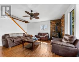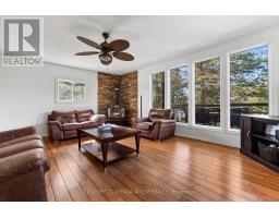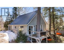 Discover the Hidden Gem of Bentley Lake! Just minutes from town, this motor-friendly lakefront property offers stunning, panoramic views from every angle. Whether you're looking for a year-round home or a peaceful 4 season cottage getaway, this property delivers. A staircase leads you down to the waters edge, where you'll find a spacious dock providing ultimate privacy. Enjoy tranquil, elevated views of the lake from your private back deck or through the living room windows. Inside, a bright sunroom entrance welcomes you into the cozy open-concept kitchen, living, and dining areas, all overlooking the serene lakeside and dock. The main floor features a master bedroom, full bathroom, and convenient main floor laundry. Upstairs, you'll find two additional bedrooms. The home also boasts a metal roof, vinyl siding, updated windows, and a heated, insulated double bay garage with a drive shed plenty of parking and workshop space! (id:61594)