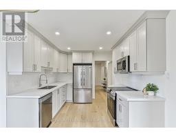 Nestled on a quiet, family-friendly street, this beautifully renovated 3 bedroom home showcases exceptional curb appeal & thoughtful upgrades throughout. The main floor welcomes you with elegant formal living & dining rooms -ideal for hosting and entertaining. The heart of the home is the stunning, modern kitchen, complete with quartz countertops, custom cabinetry & backsplash & brand-new stainless steel appliances. A bright breakfast area provides the perfect spot for casual family meals, with a walkout to the back patio for seamless indoor-outdoor living. The adjacent family room features a large picture window & a cozy wood-burning fireplace with a new stone surround, creating a warm and inviting atmosphere. Also on the main level are a stylish 2 piece powder room & a functional laundry/mudroom with custom cabinetry & new washer & dryer. Beautiful engineered hardwood flooring runs throughout the main level, adding warmth & sophistication. Upstairs, the spacious primary suite offers a large walk-in closet & a luxurious ensuite with a double-sink vanity & glass-enclosed shower. Two additional sun-filled bedrooms with new broadloom are perfect for family or guests & share an updated four-piece main bathroom. The fully finished basement provides additional living space, including a large recreation room, a 4th bedroom, and a modern 3 piece bathroom. A partially finished room offers flexibility -ideal for storage, a 5th bedroom, or a hobby space. Durable vinyl strip flooring ensures style & functionality. Step outside to the fully fenced backyard featuring a spacious patio & plenty of gardens- perfect for outdoor entertaining or relaxing in the warmer months. Extensively renovated with new windows, front door, roof shingles, and more, this home is truly move-in ready. (id:61594)