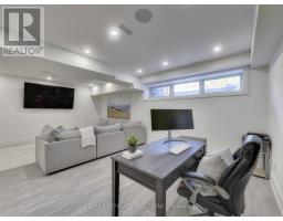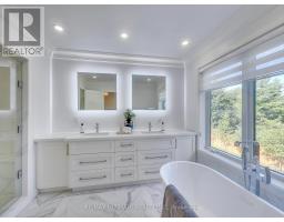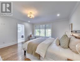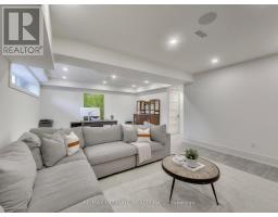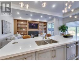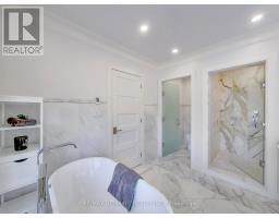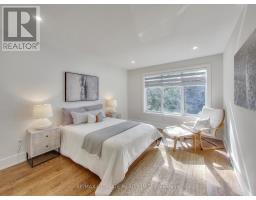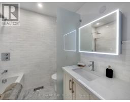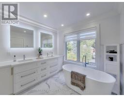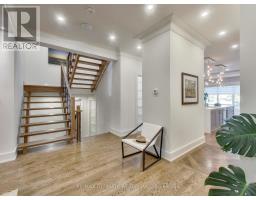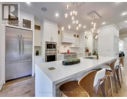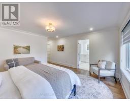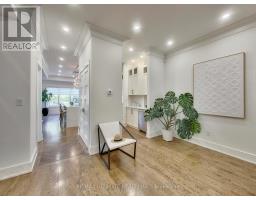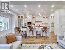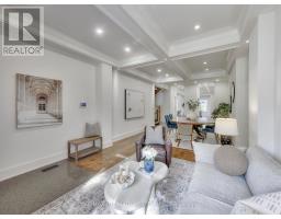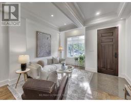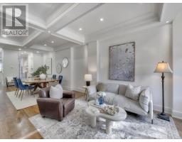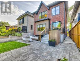 A Striking Blend of Classic and Contemporary on One of Leaside's Most Prominent Streets. Perfectly positioned on sought-after Fleming Cres, this stunning red-brick Transitional/Neo-Georgian inspired residence offers approximately 3,695 sq. ft. of luxury living space. Blending timeless elegance with modern design, it delivers the best of both worlds in one of Toronto's most coveted neighbourhoods. Inside, wood floors flow throughout, while a dramatic skylight staircase bathes the interior in natural light. The main level is anchored by a chef's kitchen - a true culinary dream - featuring a Thermador 6-burner gas range with grill, Thermador fridge & built-in oven, a large stone waterfall island, and butler's pantry with a 2nd dishwasher. The kitchen opens seamlessly to a sunlit family room, where custom built-ins and a sleek linear gas fireplace create a warm and sophisticated ambiance. Sliding doors extend the living space to a private backyard oasis. Impressive 10' ceilings enhance the main floor w/coffered ceilings in the living/dining adding architectural elegance, perfect for hosting memorable gatherings. Upper level boasts four generous bedrooms, including a primary retreat designed for luxury living. The spa-inspired ensuite is finished in Italian marble and offers heated floors, a soaker tub, glass shower with bench and body jets, plus a custom walk-in closet with additional laundry hookup for convenience. Three additional bedrooms and two full baths complete this level. The fully finished lower level offers radiant heated floors, a spacious rec room, laundry, 4-piece bath, and an additional 5th bedroom or guest/nanny room, providing versatility for guests or extended family. The private drive and built-in garage w/direct home access provide everyday convenience and additional storage, perfectly complementing the thoughtful design of this family home. Steps to top-rated schools, parks, shops, TTC, library, Sunnybrook Hospital. Walk Score 97! (id:61594)