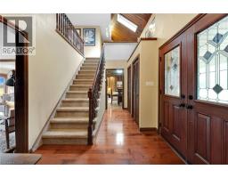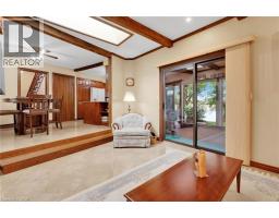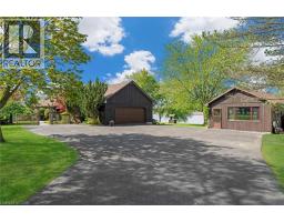 Unrivalled Grand River waterfront estate in a rarely offered location! Nestled along the serene, winding riverbanks, this 1.75 acre lot boasts a custom two storey home + a charming detached studio. A tree-lined, pave driveway gracefully ushers you into this elegant home (1982sf) featuring three bedrooms, 3 baths – two bedrooms upstairs with river vistas serviced by a modern 4pc bath, plus a coveted main level master suite with a 4pc ensuite. Step into a foyer with a soaring vaulted ceiling flowing into an elegant living/dining room area adorned with flawless hardwood floors, n/g fireplace, and expansive windows framing postcard-perfect river views. Large eat-it kitchen dazzles with granite countertops, porcelain tile floors, peninsula island, and ‘breakfast buffet’ sitting area. A versatile sunken family room connects seamlessly to mudroom/laundry room combo completed with 2pc bath. Unwind in the screened sunroom, savouring evening cocktails against stunning sunsets, or entertain on the sprawling south-facing rear deck (1213sf), ideal for summer parties & bbq-ing after a long day boating on the river. Full, & partially finished basement is available as you wish. The detached studio (520sf) with its’ cathedral ceiling, cozy woodstove, 2pc bath, and private deck (252sf) is a perfect retreat for an in-law suite, home office, or ‘ultimate mancave’. Bonus: n/g back up generator, AC ’23, newer roof, 200AMP, leafguard, n/g forced air furnace, owned HWT, attached double garage. Truly rare opportunity to own perhaps one of the finest riverfront settings in Dunnville – a timeless blend of luxury and tranquility (id:61594)