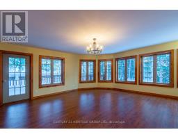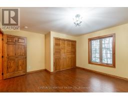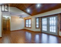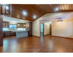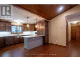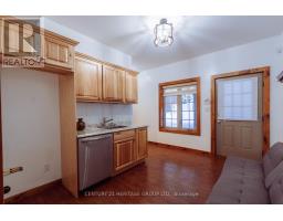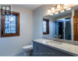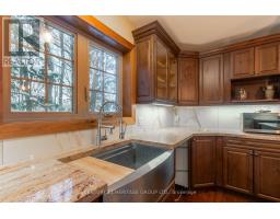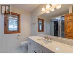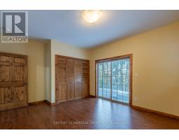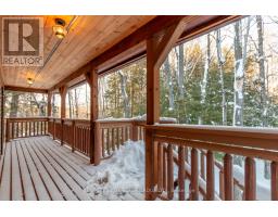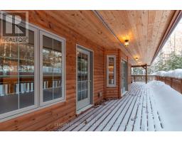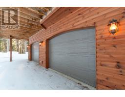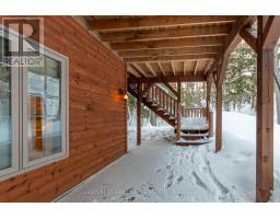 Impeccably custom-built in 2023, this striking chalet-inspired raised bungalow delivers modern comfort, thoughtful design and standout curb appeal in a quiet, desirable Dysart neighbourhood. Clean architectural lines, natural wood accents and oversized windows set the tone, filling the home with natural light and a warm, modern rustic feel. The open-concept main living area flows seamlessly to a spacious elevated deck, ideal for entertaining or relaxing while overlooking the surrounding greenery. High-end finishes shine throughout, including quartz and marble countertops, while radiant in-floor heating provides exceptional comfort across both levels and the built-in double garage. The primary suite offers a walk-in closet, ensuite bathroom, direct deck access and a beautiful panoramic view. The versatile lower level features additional living space with a kitchenette - perfect for guests or extended family. With laundry on both levels, ample storage, a stone patio and a private yard, this home effortlessly balances function and style. Conveniently located within walking distance to downtown amenities, this is a rare opportunity to own a truly turnkey home in the heart of Haliburton. (id:61594)