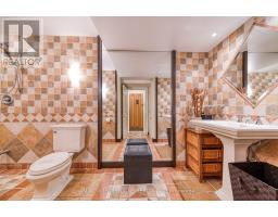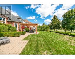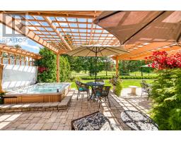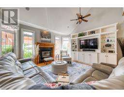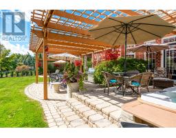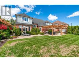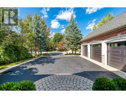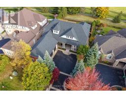 Welcome to this absolutely breathtaking executive residence, proudly offered for the first time in the prestigious Lionhead Estates. Perfectly situated on a premium lot backing directly onto the 4th hole of Lionhead Legends Golf Course & Country Club, this luxurious home offers exceptional privacy, curb appeal, and sophistication. Offering nearly 5,000 square feet of beautifully crafted, high-end finished living space designed for comfort and elegance. The exterior showcases majestic landscaping with LED lighting, a full irrigation system, and a no-sidewalk frontage that accommodates a rare three-car garage and expansive driveway. A charming front veranda with multiple entrances leads to a striking brick and stone facade with grand double-door entry. Inside, the home features an elegant, open-concept layout with 9-foot ceilings on the main level, an 18-foot vaulted ceiling in the family room, and exquisite finishes including porcelain tile flooring, crown moldings, pot lights, wainscoting, and gleaming hardwood throughout. The chef-inspired kitchen is a showstopper, complete with quartz counter tops, a large center island, custom cabinetry, walk-in pantry, and a walk-out to a custom interlock patio with built-in hot tub all overlooking spectacular golf course views. This exceptional floor plan includes two luxurious primary bedrooms, both with walk-in closets and ensuites; the main primary suite offers double-door entry, a water closet, and a Jacuzzi tub. The solid oak staircase leads to a professionally finished basement designed for entertaining, featuring Mono Cork flooring, an open-concept layout, custom wet bar with granite counter tops, a spa-style bathroom with a bath/shower area inspired by southwest resorts, and a relaxing four-person sauna. Impeccably maintained and thoughtfully upgraded throughout, this home is luxury living and true pride of ownership. (id:61594)