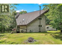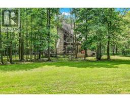 This picturesque property is a true retreat from city life. Experience natural privacy as you enter the winding driveway leading to a secluded 1-acre property that is frequented by deer, wild turkeys, rabbits, squirrels and various bird species. The sturdy chalet construction, with its harmonious blend of natural wood, angel-stone and expansive windows, invites the outdoors inside, creating an atmosphere that is both elegant and inviting. For hobbyists and mechanics, the property features a 24’x36’ heated 3-car garage/workshop and a 10’x15’ storage shed. The open concept main floor is highlighted by a soaring cathedral ceiling, a kitchen w/skylight and ample cabinetry, a dining area with garden door access to a wrap-around deck with awning, a sun-filled great rm w/sliding patio doors, and a 2-sided wood fireplace for both indoor and outdoor enjoyment. There are 2 spacious main floor bedrooms and a 4pc bath with cedar accent wall and an exterior door for bathroom access from the deck. The 2nd floor contains a primary 3rd bedroom, plus a home office area. The upper floor includes a potential 4th bedrm. The partially finished basement houses the laundry/utility rm and provides ample storage space. Notable amenities include a propane furnace, c/air, 15,000-gal cistern, septic system, and 200-amp hydro. Situated on a paved year- round road in a tranquil setting surrounded by a serene forest, vibrant perennial gardens, landscaped grounds, and a large driveway ideal for parking multiple vehicles and a boat/RV. This property appeals to outdoor enthusiasts and offers a cottage-like ambiance. You will be delighted by the 4-season beauty this property offers. Conveniently located near Cayuga & Dunnville, 30-60 min commutes to Hamilton and Niagara. With all the benefits of rural living and the convenience of nearby towns, 35 Little Rd, Cayuga, truly stands apart as a sanctuary where cherished memories are just waiting to be made. (id:61594)