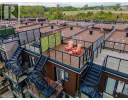 $409.91 MonthlyWelcome to 35 Midhurst Heights Unit 40, a modern and beautifully maintained townhome in the desirable Fallingwaters community by Losani Homes. Built in 2018, this stylish home offers open-concept living with thoughtful upgrades throughout. Enjoy year-round comfort with a high-efficiency air conditioner installed in 2019. Two Phantom retractable screen doors (2020) allow for seamless indoor-outdoor living, while a sleek built-in electric fireplace (2023) adds a warm, contemporary touch to the living area. One of the standout features of this home is the private rooftop terrace, offering unobstructed views of scenic Stoney Creek—a perfect space for relaxing, entertaining, or enjoying breathtaking sunsets. Ideally located near parks, trails, and major highways, this home is also just minutes from Confederation, where a new GO Train station is set to begin operations in late 2025—a fantastic advantage for commuters and future-forward homeowners. A true turnkey opportunity in a growing and vibrant neighbourhood. (id:61594)