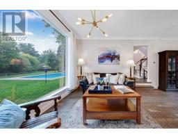 Welcome to Ridgehill, where modern luxury meets meticulous design. This home has been lovingly cared for, with every detail thoughtfully considered. The spectacular living room features large picture windows that frame serene views of the front yard and the lush backyard, where a sparkling swimming pool and greenbelt await. The stunning eat-in kitchen, with its well-appointed cabinetry, is a chef's dream. Enjoy a seamless flow from the kitchen to the sun-drenched family room and sunroom, both offering panoramic views of the spectacular backyard. The main floor also includes a versatile office that can easily be used as a fourth bedroom. Upstairs, the private quarters feature three bedrooms, each with its own bathroom. The primary bedroom is a peaceful sanctuary, complete with skylights for stargazing, a spa-like ensuite with a soaker tub, separate shower, and heated towel racks. The laundry room is conveniently located right next to the primary suite. The finished basement is a flexible space perfect for a rec room or in-law suite, complete with a three-piece bathroom and plumbing for a second kitchen. This is more than a house it's your forever home. (id:61594)