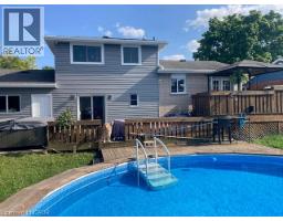 Welcome to Grimsby Beach! Beautifully maintained 4-level split with extensive updates and a bird’s-eye view of Lake Ontario. This inviting home offers 3 bedrooms, including one conveniently located on the main floor, 2 renovated bathrooms, and main-level laundry for added ease. Relax in the spacious recreation room featuring a stylish bar, and enjoy ample storage in the crawlspace. A double concrete driveway leads to the single-car garage. The fully fenced backyard is designed for entertaining and family living, complete with tiered decking, gazebo, on-ground pool, hot tub, and shed, perfect for a growing family. Updates include exterior siding, a living room picture window with California shutters, furnace and central air, on-demand hot water heater, 200 amp service, renovated main bathroom, updated kitchen, and fresh paint throughout. Situated in a family-friendly neighbourhood close to shopping, parks, schools, and offering easy highway access to Niagara and Toronto, all just steps from Lake Ontario. Make your move today, this one won’t last! (id:61594)