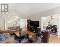 Welcome to this impeccably maintained 3-bedroom single-family home in the heart of Stittsville. This bright, sun-filled bungalow features high-end, modern finishes throughout. The main level offers hardwood and tile flooring, a formal dining room, and a spacious living area with a gas fireplace. The fully renovated kitchen (2023) includes an eat-in area ideal for everyday living. The primary suite features a walk-in closet and a renovated ensuite (2023) with heated floors and curbless shower. Two additional well-sized bedrooms and an updated main bath (2025), also with heated floors, complete the main level. The fully fenced backyard is set up for outdoor enjoyment with a new gazebo (2025) ,planter beds and irrigation system. The spacious finished basement adds valuable living space with a large rec room, bedroom, full bath, massage room, and workshop. Professionally painted with custom window coverings throughout. Conveniently located within walking distance to schools, parks, restaurants, transit, and the Trans Canada Trail. (id:61594)