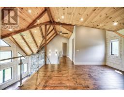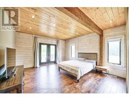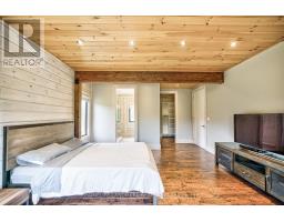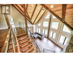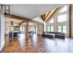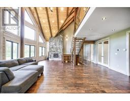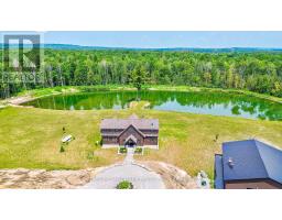 Discover unparalleled charm and sophistication in this exquisite luxury 4-season home situated on a sprawling 50+ acre estate that includes a stunning 2.25-acre private pond. This 4+1 bdrm, 3.5+1 bthrm residence, encompassing approximately 3,200sqf, seamlessly blends modern elegance with rustic allure, Gourmet Kitchen: Equipped with top-of-the-line appliances, custom European cabinetry, and a over-sized quartz counter top island, Experience a grand family room with vaulted ceilings provide a opulent living spaces, custom-stone wood-burning fireplace, Floating Oak stairs access to the loft provides extra living space, panoramic windows that frame breathtaking views of the expansive estate, beautifully manicured gardens and a wraparound deck, A 2.25-acre private pond enhances the property's natural beauty and provides a serene spot for relaxation or outdoor activities. A 3000sqf detached workshop/garage with oversized doors, perfect for hobbyists, craftsmen, or car/boat enthusiasts. Conveniently located near Georgian Bay, ski resorts, dining, beaches, trails, and local farms, this luxury home provides a tranquil retreat with easy access to modern amenities. (id:61594)
