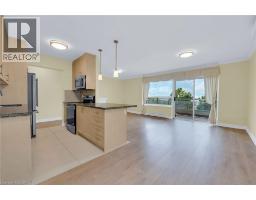 $554.76 MonthlyWHAT A VIEW! WHAT A LOCATION! Spacious 2 bedroom, 2 bathroom unit in the beautiful Imperial Suites. This small recently renovated building features 27 units (9 floors, 3 units per floor) where all units face North with views of the City and Bay. Double doors lead to #302 and 1106 square feet of easy living and spectacular views. Step inside the spacious entry with room for a bench and large entry closet. Light maple coloured kitchen cabinetry features extended upper cabinets, granite countertops with breakfast bar, double sink and stainless appliances. Open Concept principal rooms offers loads of natural light and sliding door leading to an additional 107 sq ft of open private balcony ideal for morning coffee and warmer evenings enjoying the view. The primary bedroom can accommodate the largest of furnishings and offers a convenient 3pc ensuite with walk-in shower. Generous 2nd bedroom with double closets would be ideal as a den or home office. Second full bathroom is a 4pc with tub. No need to head to the laundry room ... we have in-suite laundry with stacked washer/dryer. Owned Parking Spot #9 and exclusive use Locker #8. Reasonable condo fees! Convenient location ... Steps to bus route, shops, Juravinski, eateries and the beautiful Sam Lawrence Park. Easy access to the Downtown Core. (id:61594)