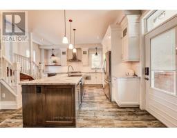 350 Queen Street S is a rare & beautifully restored century home just one block from Victoria Park, steps to the heart of downtown Kitchener, blending timeless charm with modern refinement. Inside, the home's historic character shines through original doors, rich hardwood floors, intricate millwork, and exquisite stained-glass windows. The elegant living room, centered around a cozy gas fireplace, flows effortlessly into the formal dining room. Original pocket doors offer the option of privacy while preserving the home's classic appeal. The heart of the homethe kitchenhas been thoughtfully updated with white granite countertops, custom cabinetry, and high-end stainless steel appliances, including a gas stove, warming drawer, trash compactor, under-counter bar fridge, and heated floors for an added touch of luxury. Upstairs, the second level features three generous bedrooms, including a peaceful primary suite with large windows and abundant natural light. The spa-inspired main bathroom includes double sinks, quartz countertops, a soaker tub, and a walk-in shower. A convenient second-floor laundry room enhances everyday functionality. The third-floor loft has been completely reimagined as a stylish and versatile in-law suite, complete with a modern kitchenette, cozy living area, a beautifully appointed bathroom with stacked subway tile and a floating wood vanity, and an additional bedroom offering privacy for guests or extended family. Outside, the private backyard retreat is designed for low-maintenance enjoyment, showcasing a built-in BBQ with black granite counters, a pergola, and lush, refined landscaping. A full-height basement with a separate entrance presents exciting potential for added living space, a home office, or another in-law suite. Meticulously upgraded with new windows, new boiler system, extensive exterior improvements, restored staircases, a fully renovated kitchen and loft, and a complete electrical update- this one-of-a-kind! (id:61594)